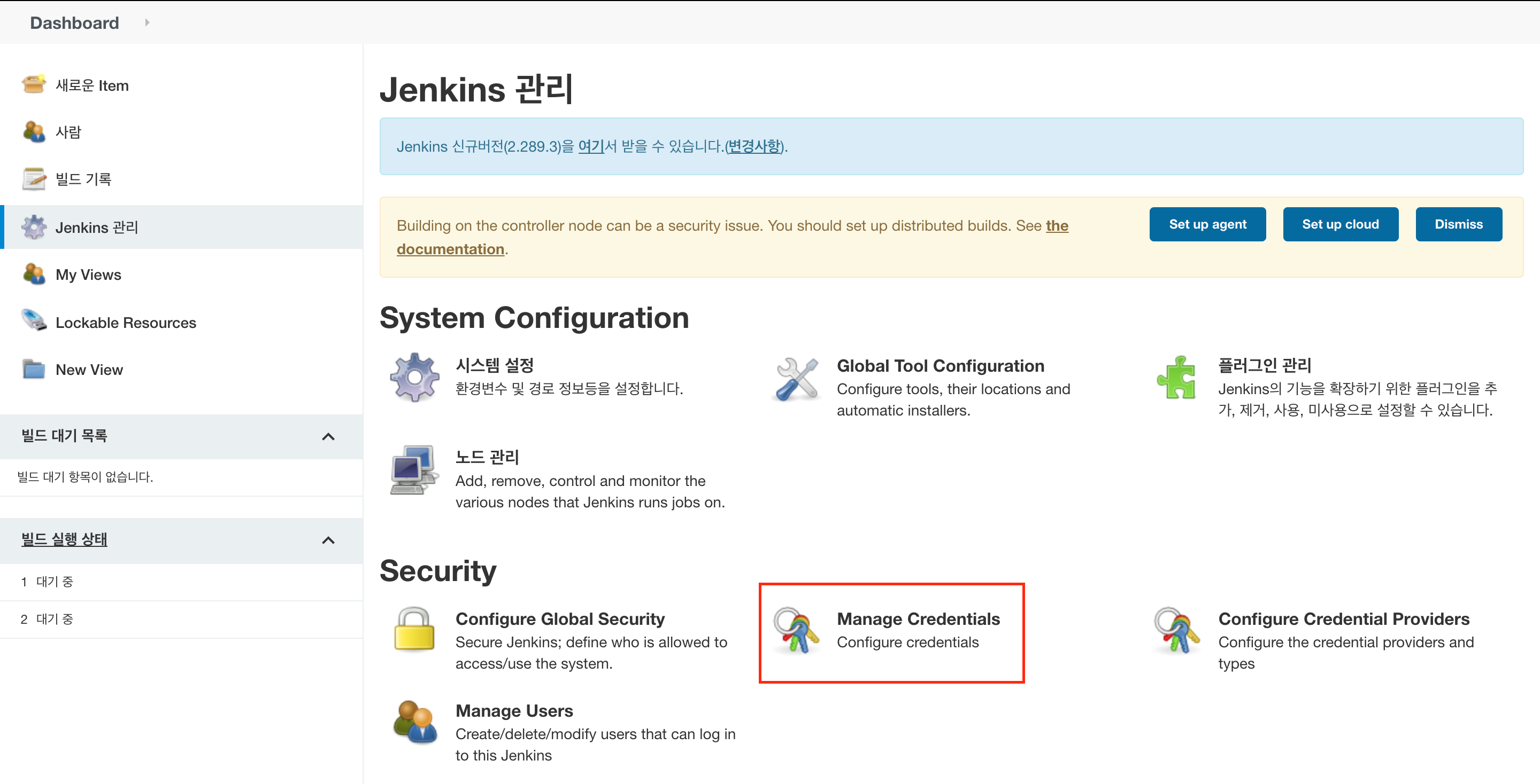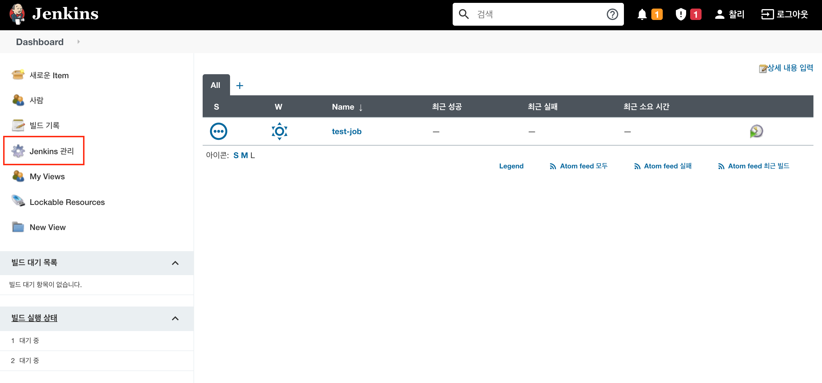 Jenkins 관리로 들어가시면 아래와 같은 화면이 나옵니다.