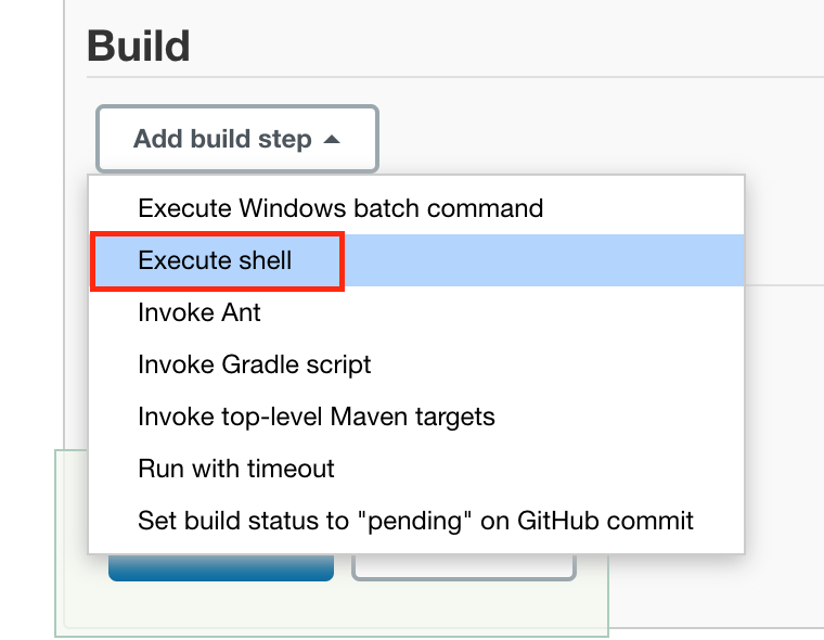 Build 단계에서 Add build step을 클릭하면 다양한 빌드 방법들이 있는데 여기서는 Execute shell을 활용하겠습니다.