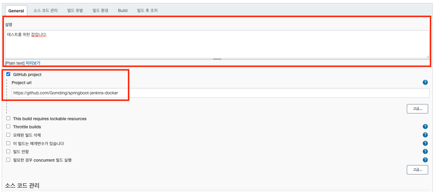 이제 다시 젠킨스 설정으로 돌아와서 빌드를 실행하기 위한 설정을 하겠습니다.