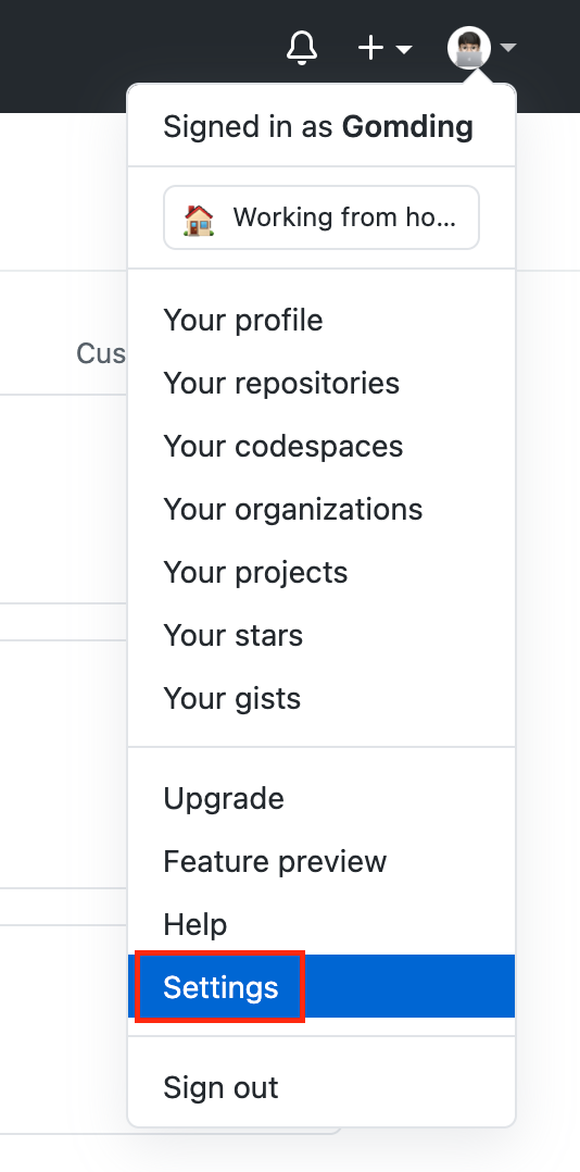 먼저 Github의 내프로필을 클릭하면 나오는 Settings로 갑니다.