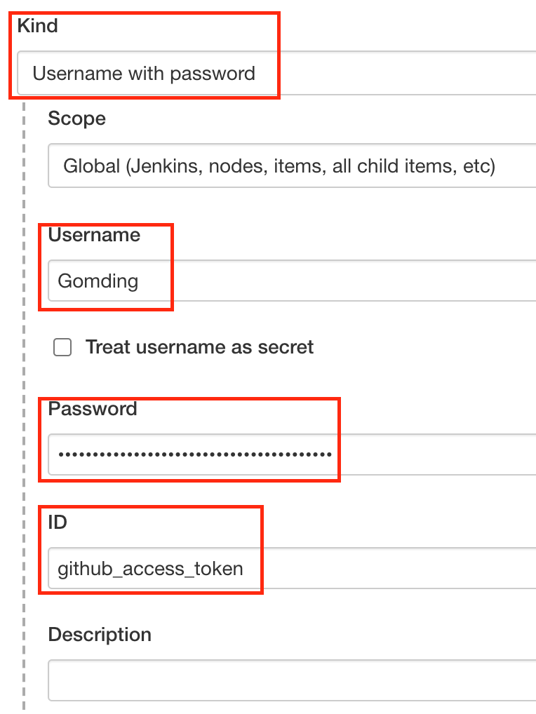 Kind는 인증 방식을 의미합니다. 여러가지가 있지만 지금은 Username과 Token으로 인증을 할것이므로 Username with password를 선택합니다.