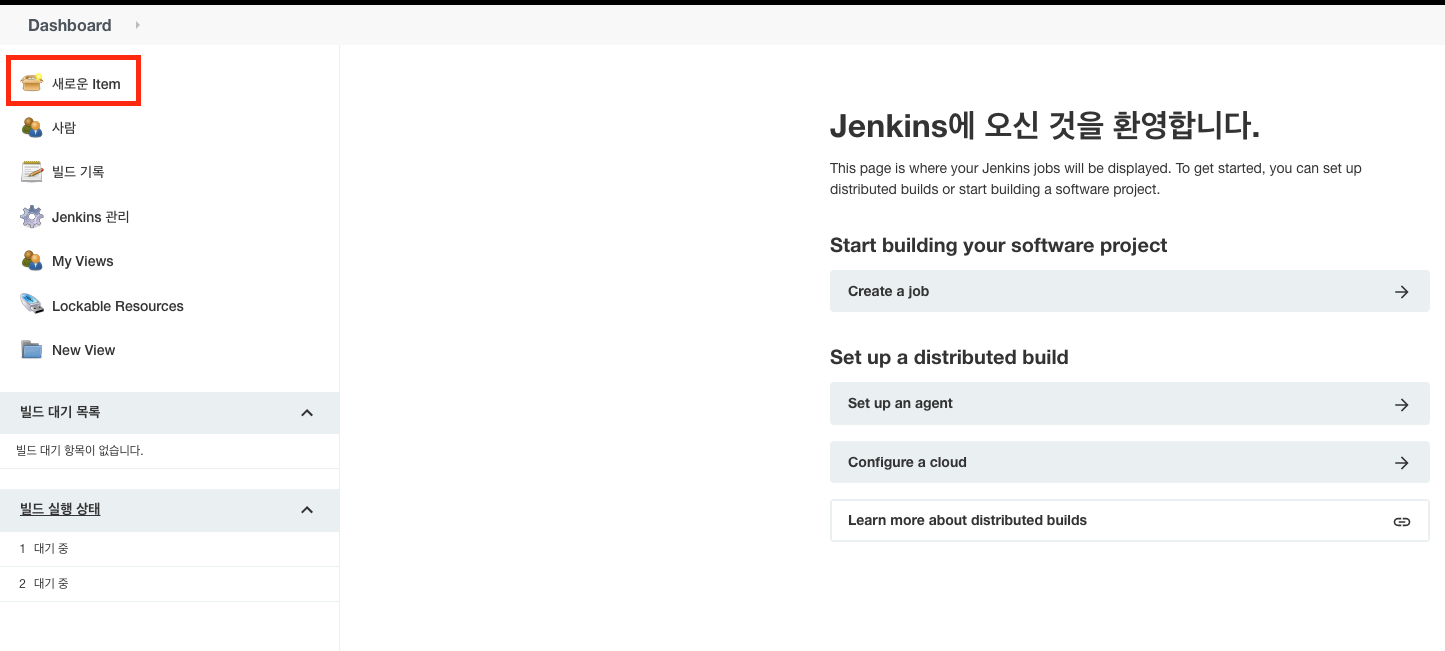Jenkins 를 선택해주시면 아래와 같은 화면이 나옵니다.