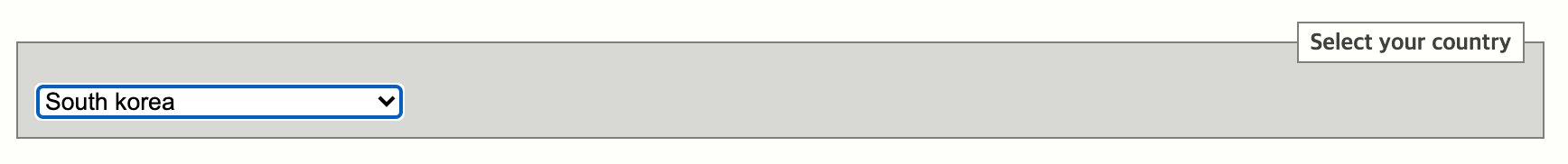 4. Select your country탭에서 South korea를 선택합니다.