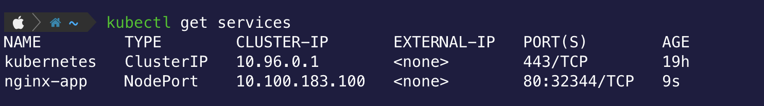 $ kubectl expose deployment nginx-app --type=NodePort