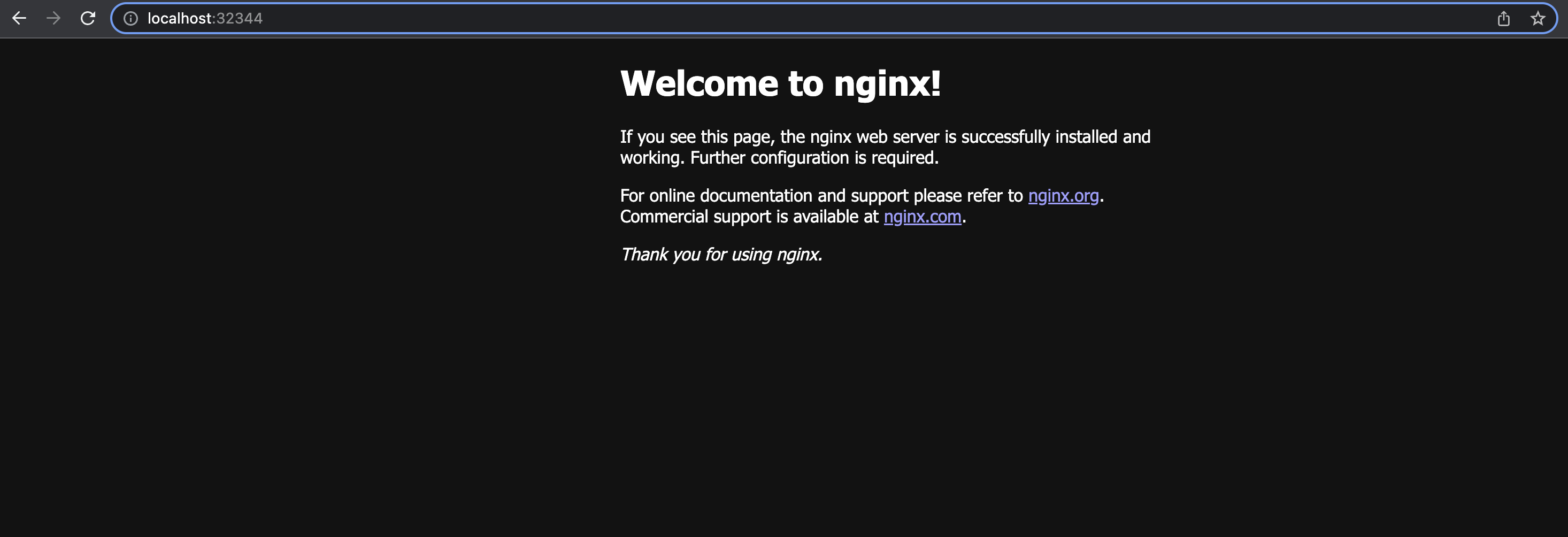 kubectl get services 명령어를 통해 nginx-app 이 32344라는 외부 포트와 연결된 것을 확인할 수 있다.