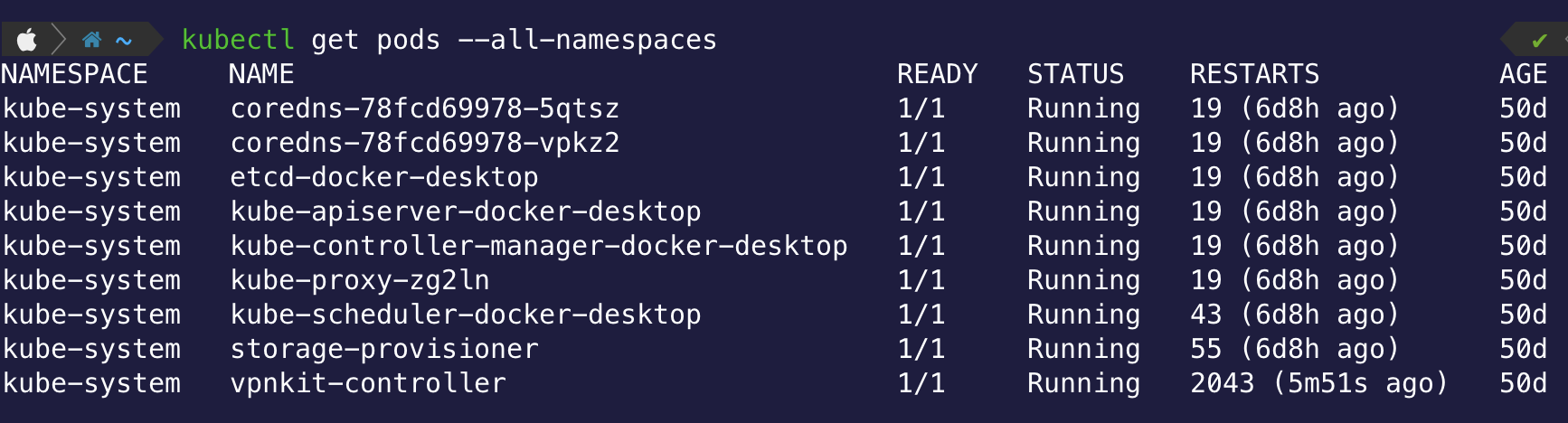 $ kubectl get pods --all-namespace
