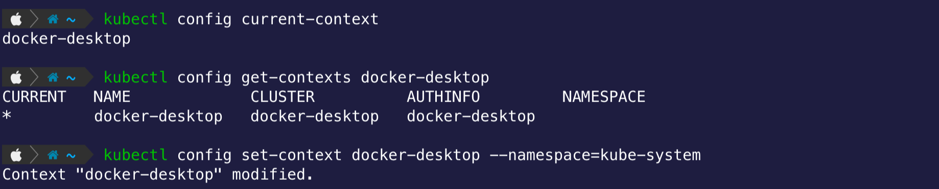 $ kubectl config set-context docker-desktop --namespace=kube-system