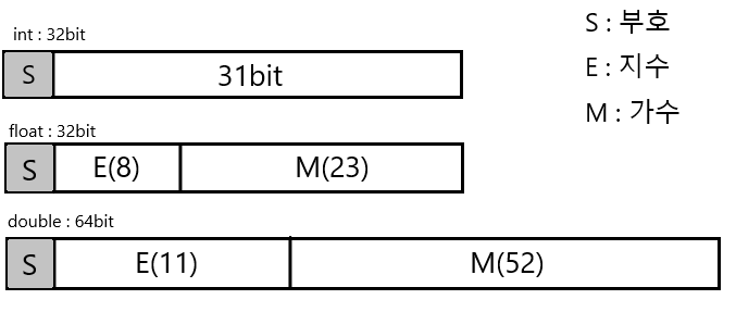 실수형은 같은 크기라도 정수형보다 저장 가능한 범위가 훨씬 큰데 이는 실수형의 값을 저장하는 형식이 부호, 지수, 가수로 되어있어서 그렇습니다. 하지만 실수형은 오차가 발생할 수 있다는 단점이 있습니다. 따라서 실수형에서는 표현할 수 있는 값의 범위 뿐만아니라 '정밀도'도 중요한 요소입니다.