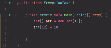 아래 코드는 배열의 인덱스가 9까지인 int 배열 변수 arr에서 12의 인덱스에 접근하는 코드입니다.