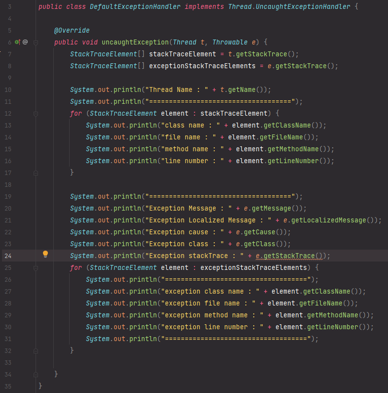 아래는 UncaughtExceptionHandler 를 구현한 DefaultExceptionHandler 입니다.