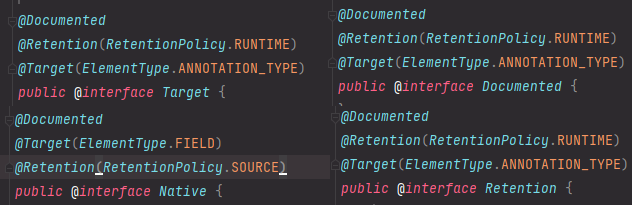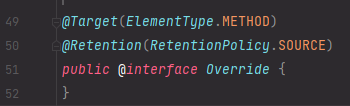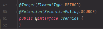 - 코드는 implements 이지만 인터페이스 끼리 상속받은 것이기 때문에 실제로는 'extends java.lang.annotation.Annotation' 과 같습니다.