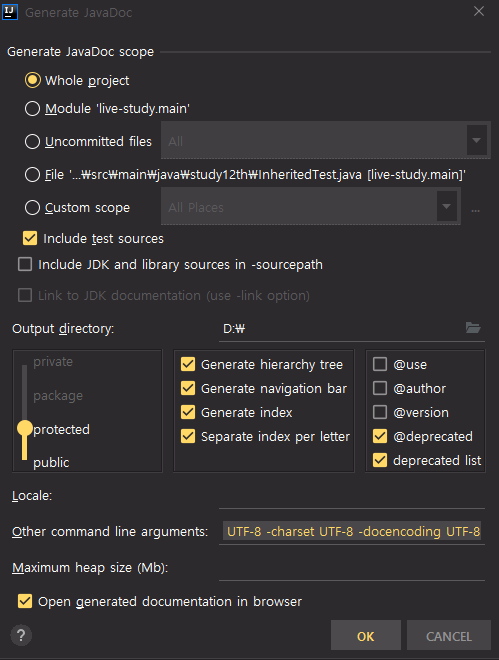 | javadoc | javadoc 경고와 관련된 경고를 억제합니다. |
