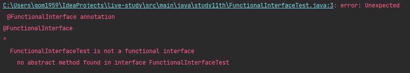 만약 메서드 개수가 1개가 아니면 위와같은 에러메시지가 나옵니다. 역시나 컴파일러는 친절합니다.