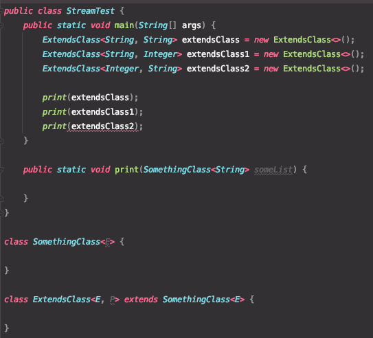- 매개 변수가 있는 클래스를 확장하는 클래스 또는 인터페이스