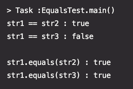 str1 == str3 는 두 객체가 다른 주소값이기 때문에 false를 반환합니다.