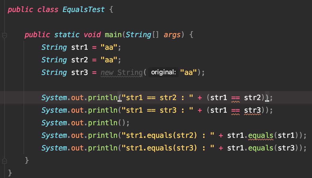 따라서 String str1 = "aa" 와 String str2 = "aa 를 equals 메서드로 비교하면 같은 객체로 판단합니다.