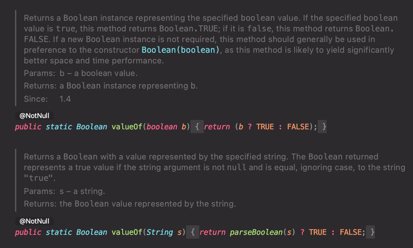 예를들어 다음과 같은 박싱 클래스의 valueOf() 메서드가 있습니다.